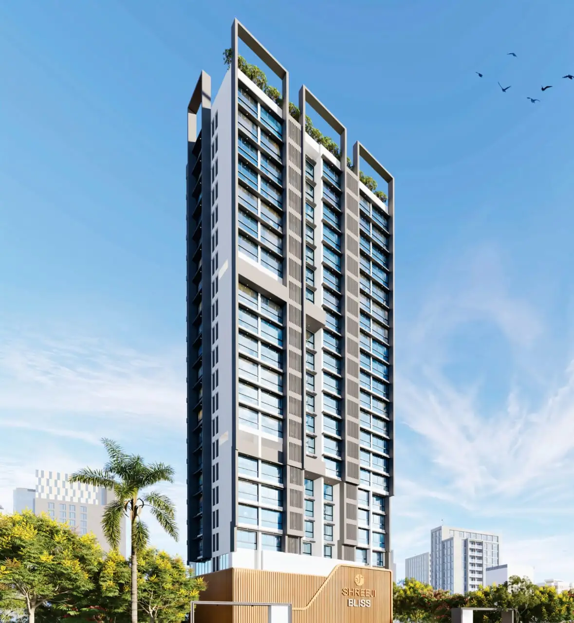 About Shreeji Bliss: SHREEJI BLISS stands as a symbol of elegant urban living in Orlem, Malad (West). This high-rise tower features stylish one-and two-bedroom apartments, designed with modern aesthetics and finishes that combine comfort with contemporary flair. The rooftop amenities offer a serene escape, transforming everyday life into a sophisticated experience. With seamless connectivity through rail, metro. and road, SHREEJI BLISS ensures that convenience and elegance are at your doorstep.